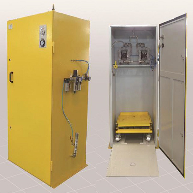 Для безопасной и надлежащей работы системы применяется пневматический мембранный насос, который представляет собой новый тип конвейерного оборудования. Используя сжатый воздух в качестве источника питания, его можно использовать для различных агрессивных жидкостей, жидкостей высокой вязкости, летучих, легковоспламеняющихся и высокотоксичных жидкостей. После заземления исключается образование искр, во время работы насоса не выделяется тепло, отсутствует перегрев. Жидкость также не перегревается, поскольку мембранный насос с пневматическим приводом вызывает минимальное перемешивание жидкости.